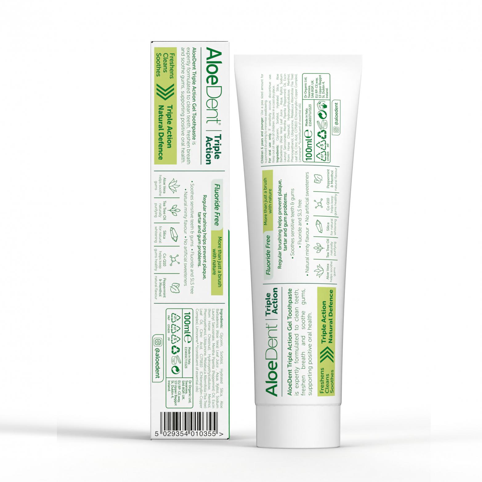 Triple Action Aloe Vera Gel Toothpaste Fluoride Free 100ml