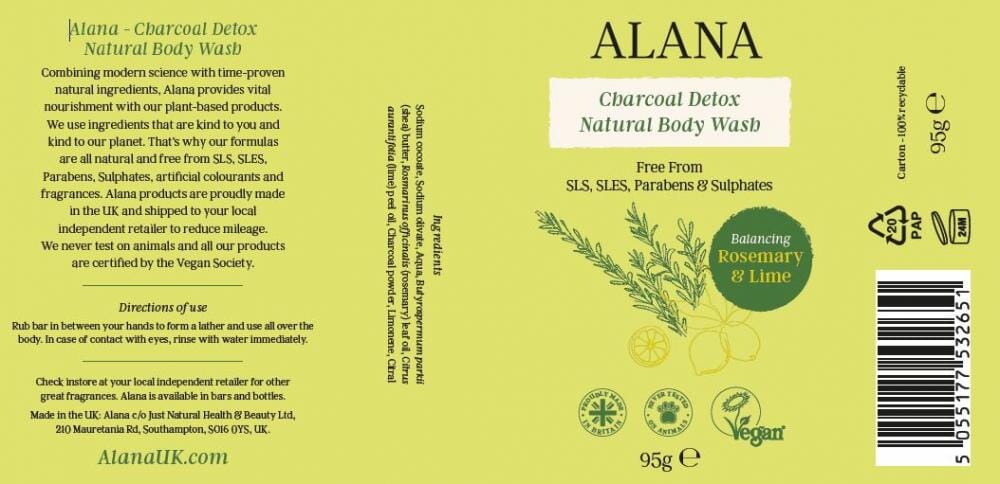 Alana is formulated with natural ingredients and free from SLS, SLES, parabens, sulphates, and artificial fragrances and colourants. The body wash, shampoo and conditioner bars are 100% plastic free, never tested on animals and they are all certified by the Vegan Society.
