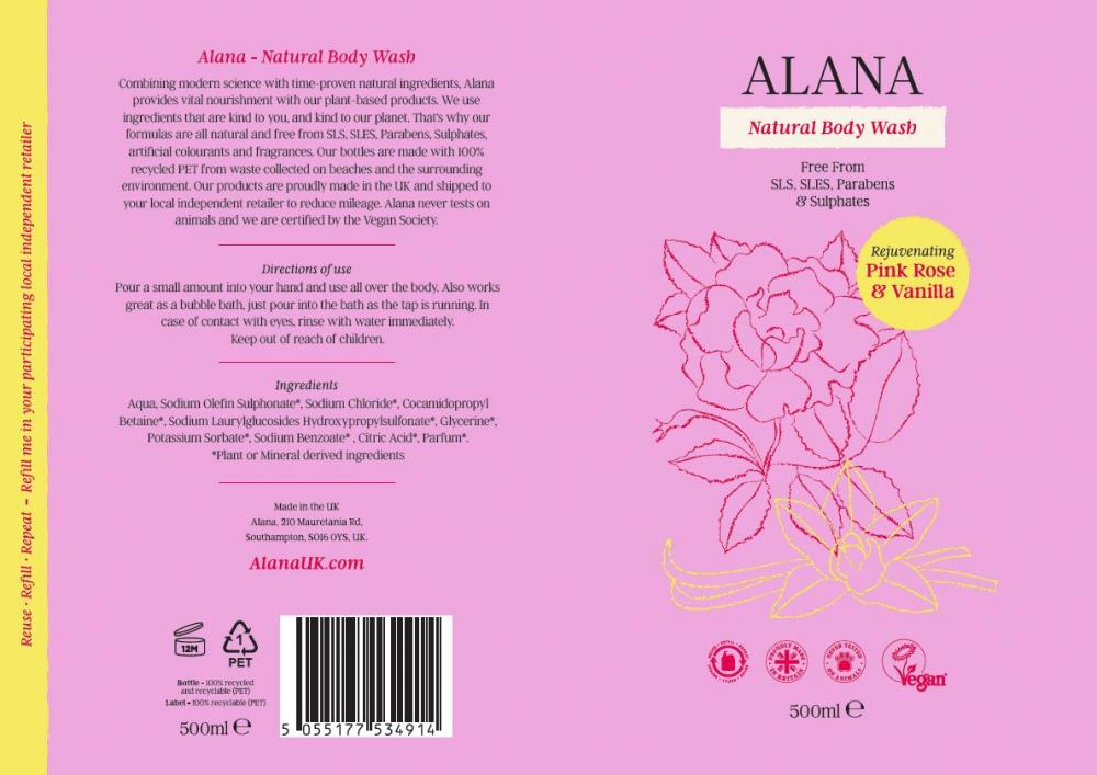 Alana is formulated with natural ingredients & free from SLS, SLES, parabens, sulphates & artificial colourants. These bottles are made with 100% recycled PET from waste collected on beaches & the surrounding environment. Alana never tests on animals & they are certified by the Vegan Society.