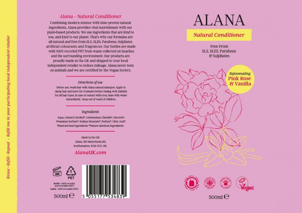 Alana is formulated with all natural and free from SLS, SLES, Parabens, Sulphates and artificial colourants. The bottles are made with 100% recycled PET from waste collected on beaches and the surrounding environment. Alana never tests on animals and they are certified by the Vegan Society.