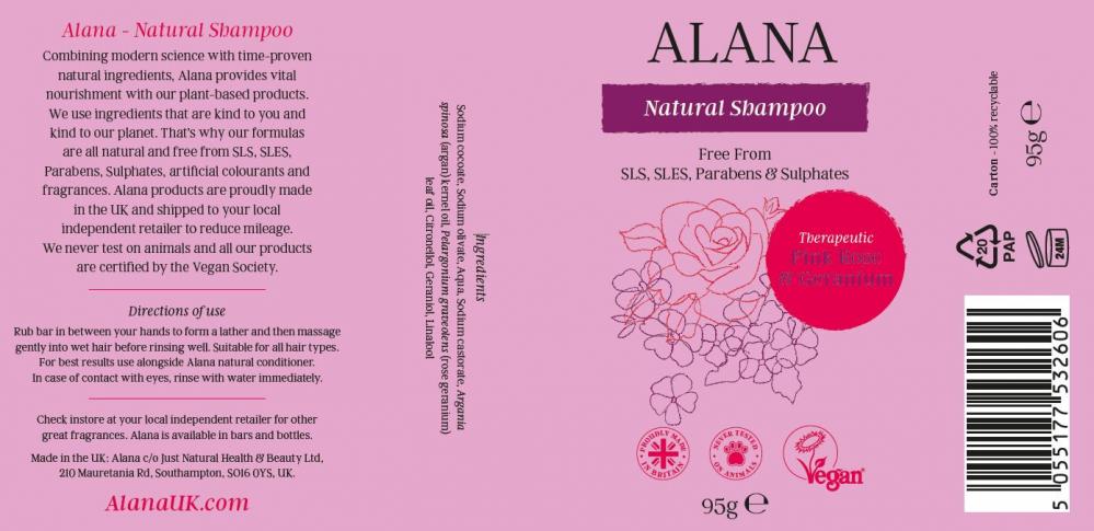 Alana is formulated with natural ingredients and free from SLS, SLES, parabens, sulphates, and artificial fragrances and colourants. The body wash, shampoo and conditioner bars are 100% plastic free, never tested on animals and they are all certified by the Vegan Society.