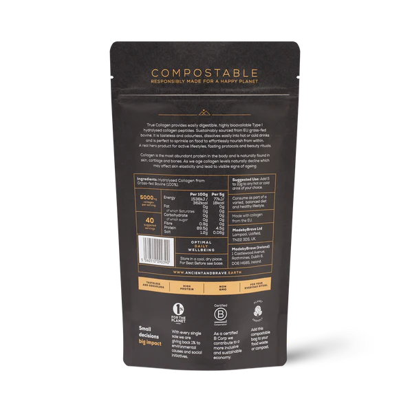 True Collagen provides easily digestible, highly absorbable and clinically researched Type 1 hydrolysed collagen peptides. Instantly dissolves, tasteless and odourless, easy to add to hot and cold drinks and pre or post workout smoothies. A real hero product for active lifestyles and beauty rituals.