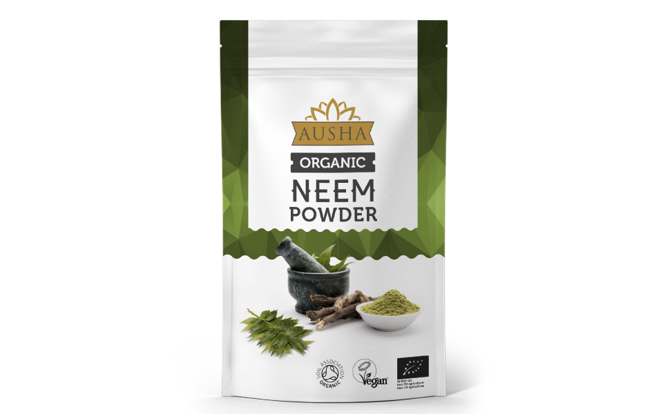 Neem powder supports the immune system and may support hair growth if mixed with water into a paste and applied to wet hair. Certified Organic by Soil Association in the UK.