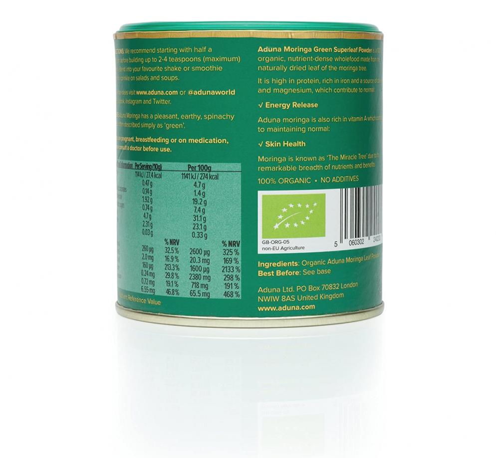 Aduna Moringa Powder has a moreish spinachy flavour. Add 1-2 teaspoons (or half a teaspoon if you're just starting out) into your daily diet!