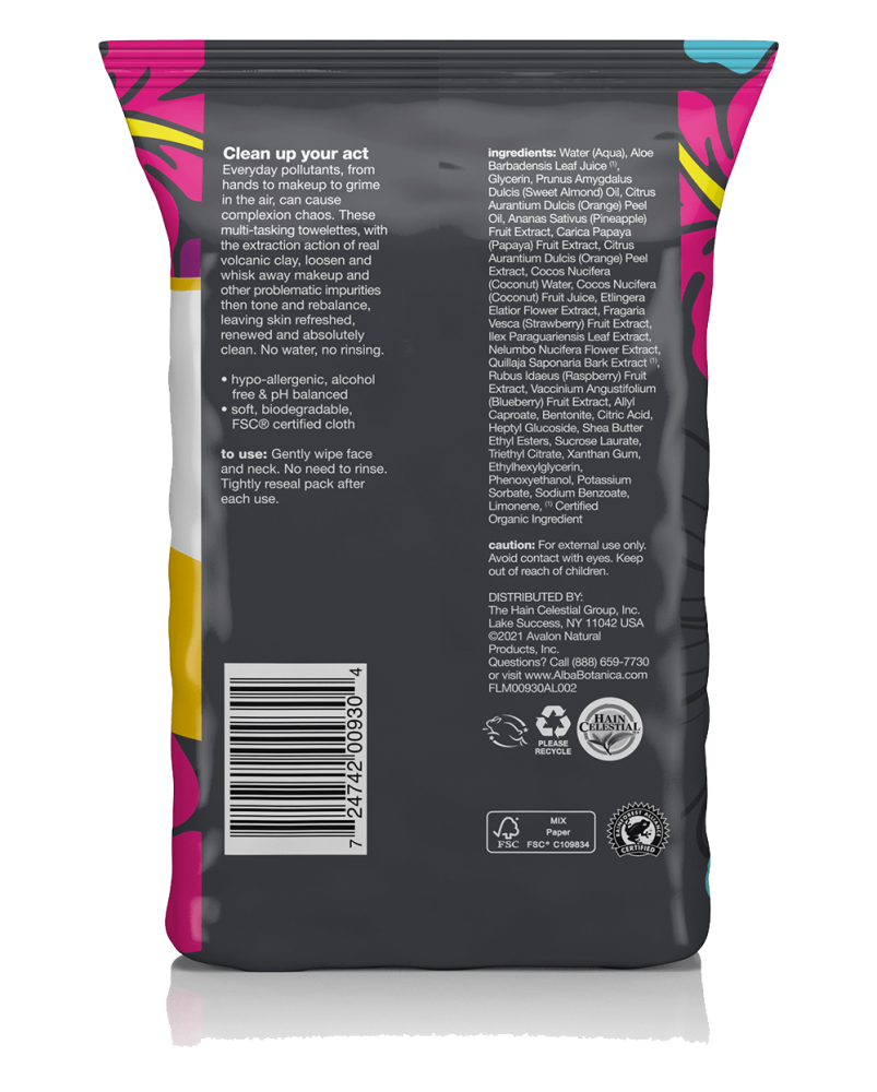 Everyday pollutants, from hands to makeup to grime in the air, soil your pores and cause complexion problems. These multi-tasking towelettes, with the extraction action of real volcanic clay, loosen, absorb and wipe away makeup and other problematic impurities and then tone the skin.