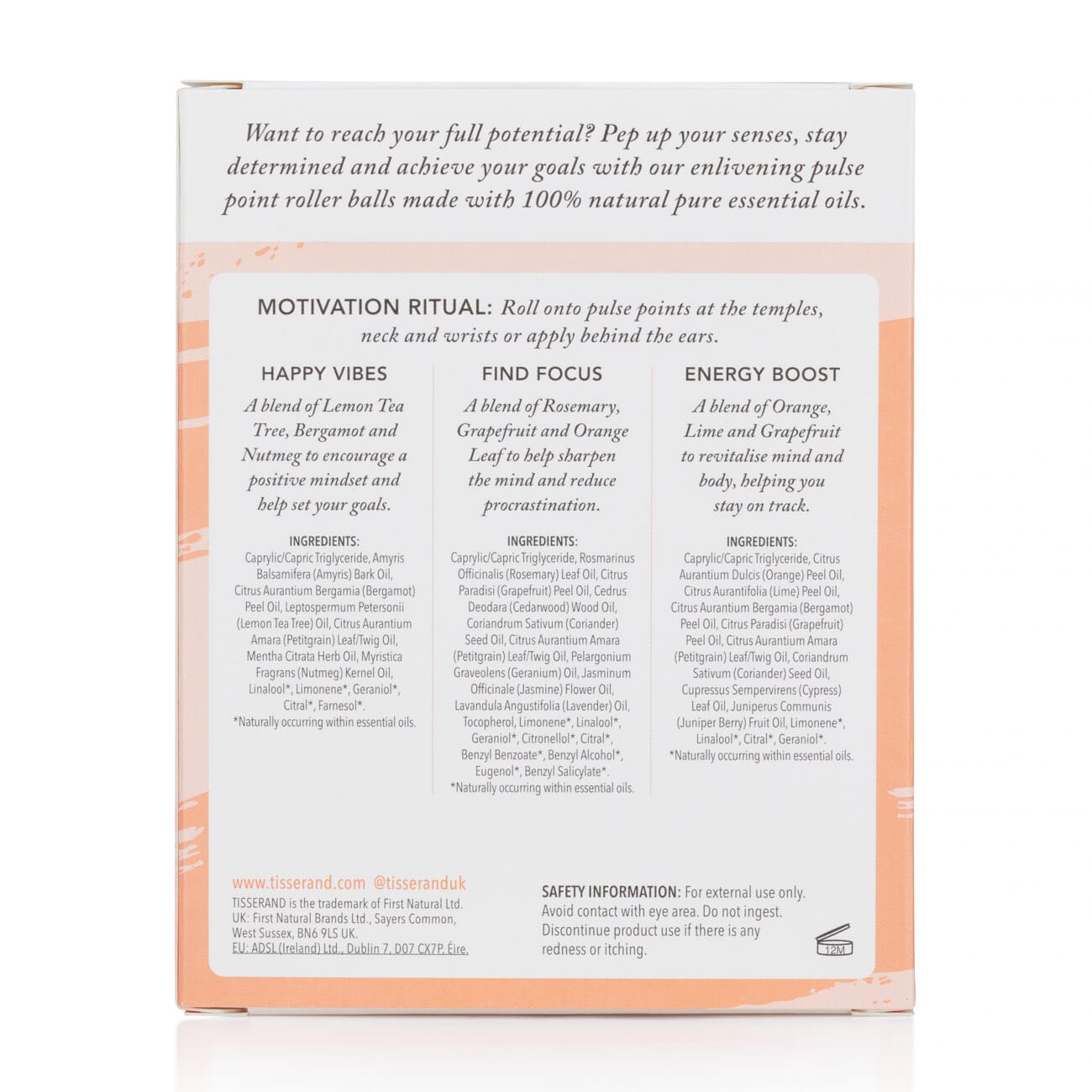 HAPPY VIBES ROLLER BALL: Caprylic/Capric Triglyceride, Amyris Balsamifera (Amyris) Bark Oil, Citrus Aurantium Bergamia (Bergamot) Peel Oil, Leptospermum Petersonii (Lemon Tea Tree) Oil, Citrus Aurantium Amara (Petitgrain) Leaf/Twig Oil, Mentha Citrata Herb Oil, Myristica Fragrans (Nutmeg) Kernel Oil, Linalool*, Limonene*, Geraniol*, Citral*, Farnesol*. FIND FOCUS ROLLER BALL: Caprylic/Capric Triglyceride, Rosmarinus Officinalis (Rosemary) Leaf Oil, Citrus Paradisi (Grapefruit) Peel Oil, Cedrus Deodara (Cedarwood) Wood Oil, Coriandrum Sativum (Coriander) Seed Oil, Citrus Aurantium Amara (Petitgrain) Leaf/Twig Oil, Pelargonium Graveolens (Geranium) Oil, Jasminum Officinale (Jasmine) Flower Oil, Lavandula Angustifolia (Lavender) Oil, Tocopherol, Limonene*, Linalool*, Geraniol*, Citronellol*, Citral*, Benzyl Benzoate*, Benzyl Alcohol*, Eugenol*, Benzyl Salicylate*.