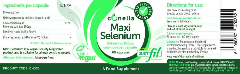 Additives: The L-Selenomethionine ingredient contains some dicalcium phosphate as a compound ingredient. BioPerine™ (Piper nigrum berry) contains corn maltodextrin and silicon dioxide as a compound ingredient