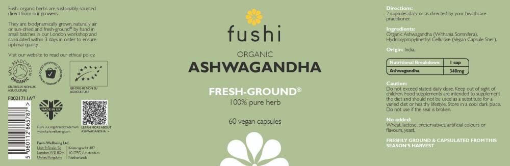 Fushi Fresh-Ground® wholefood Ashwagandha herb to rejuvenate and restore body and mind.