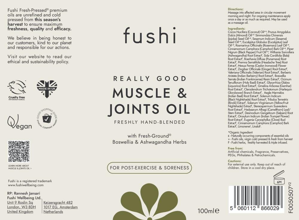 Fushi Really Good Muscle & Joints Oil is a wonderful blend of stimulating natural ingredients to luxuriously relax away tired muscles & sore joints to leave the body refreshed & rejuvenated. Formulated using a warming and comforting combination of Black Pepper, Eucalyptus, Rosemary & Camphor.