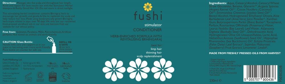 Fushi Stimulator Conditioner is a natural hair replenishing Ayurvedic herb-rich conditioner, to nourish & volumise the hair.