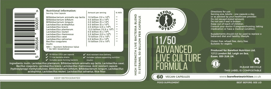 This live culture formula is a blend of 11 healthful bacteria species at 50 billion CFU per capsule. Made in the UK and with the inclusion of the organic prebiotic inulin, spore forming soil based bacteria and zero artificial additives.