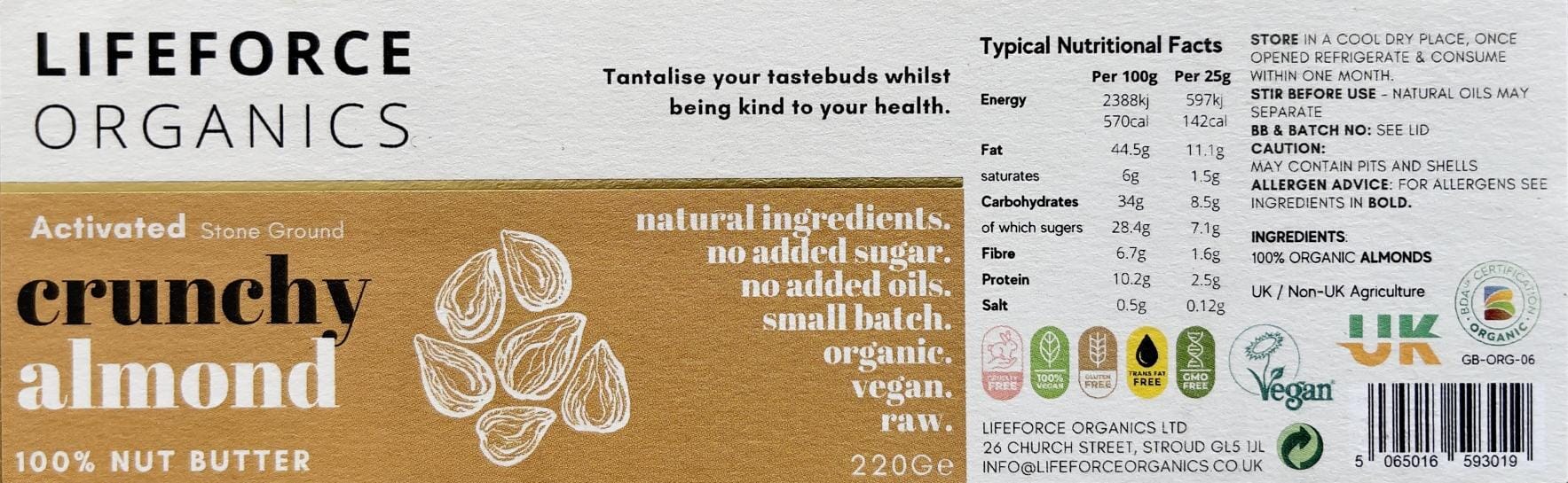 Activated Crunchy Almond Nut Butter 220g SINGLE