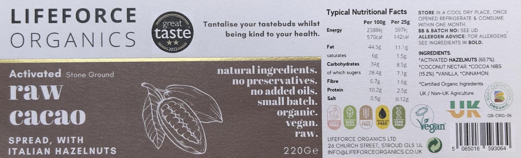 Enjoy the rich, organic taste of this activated, raw cacao and hazelnut spread!