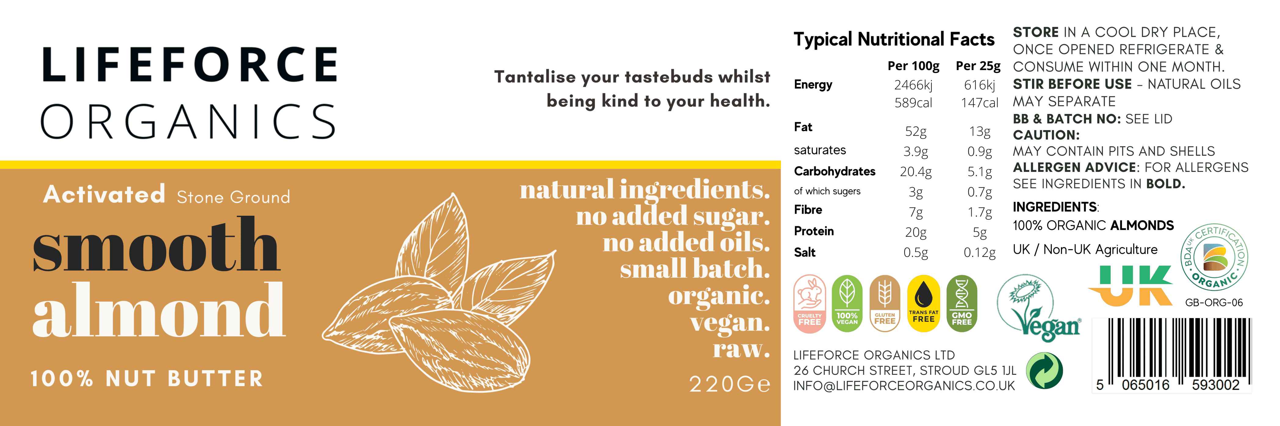 Activated Smooth Almond Nut Butter 220g x 6 CASE