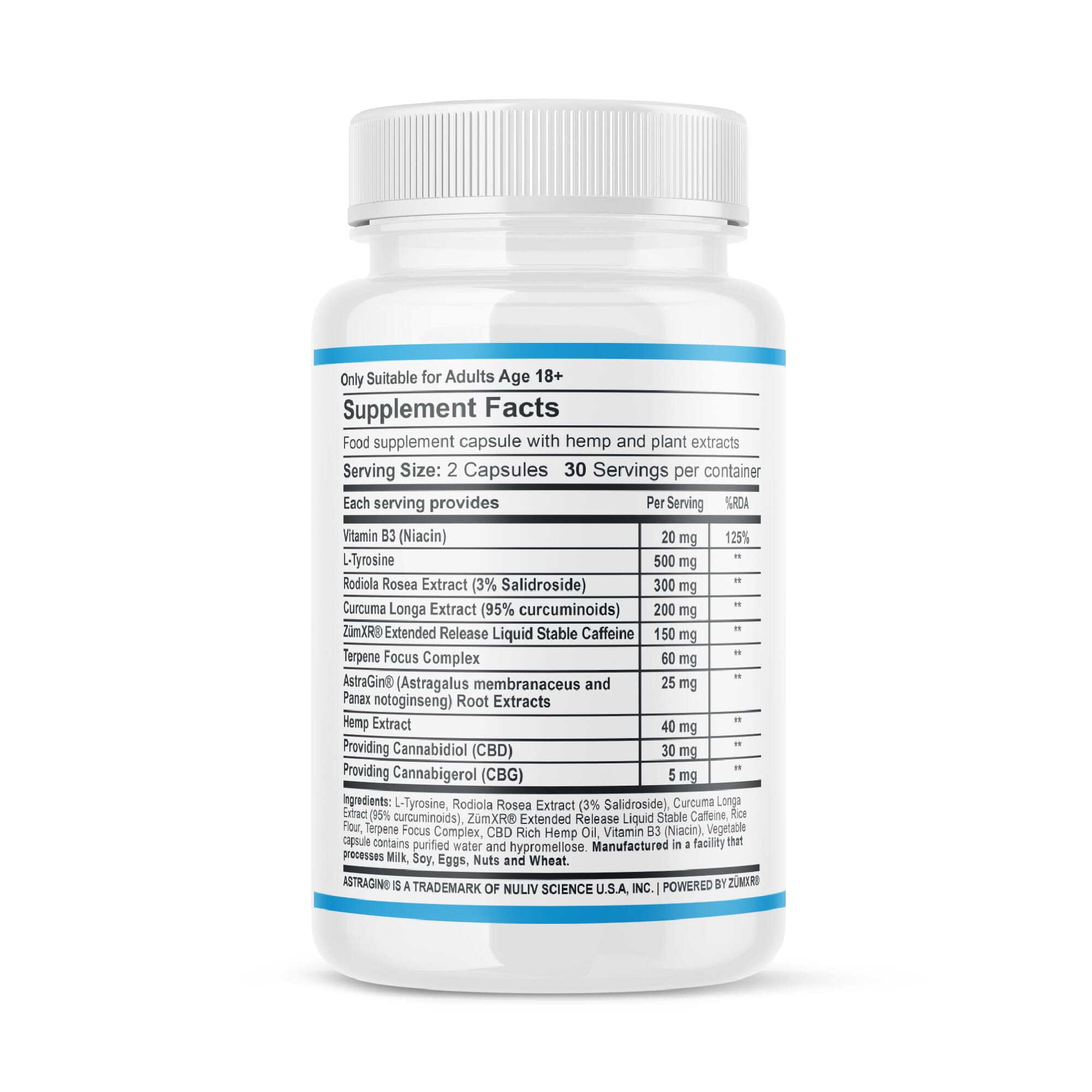 Manufactured in a facility that processes Milk, Soy, Eggs, Nuts and Wheat.