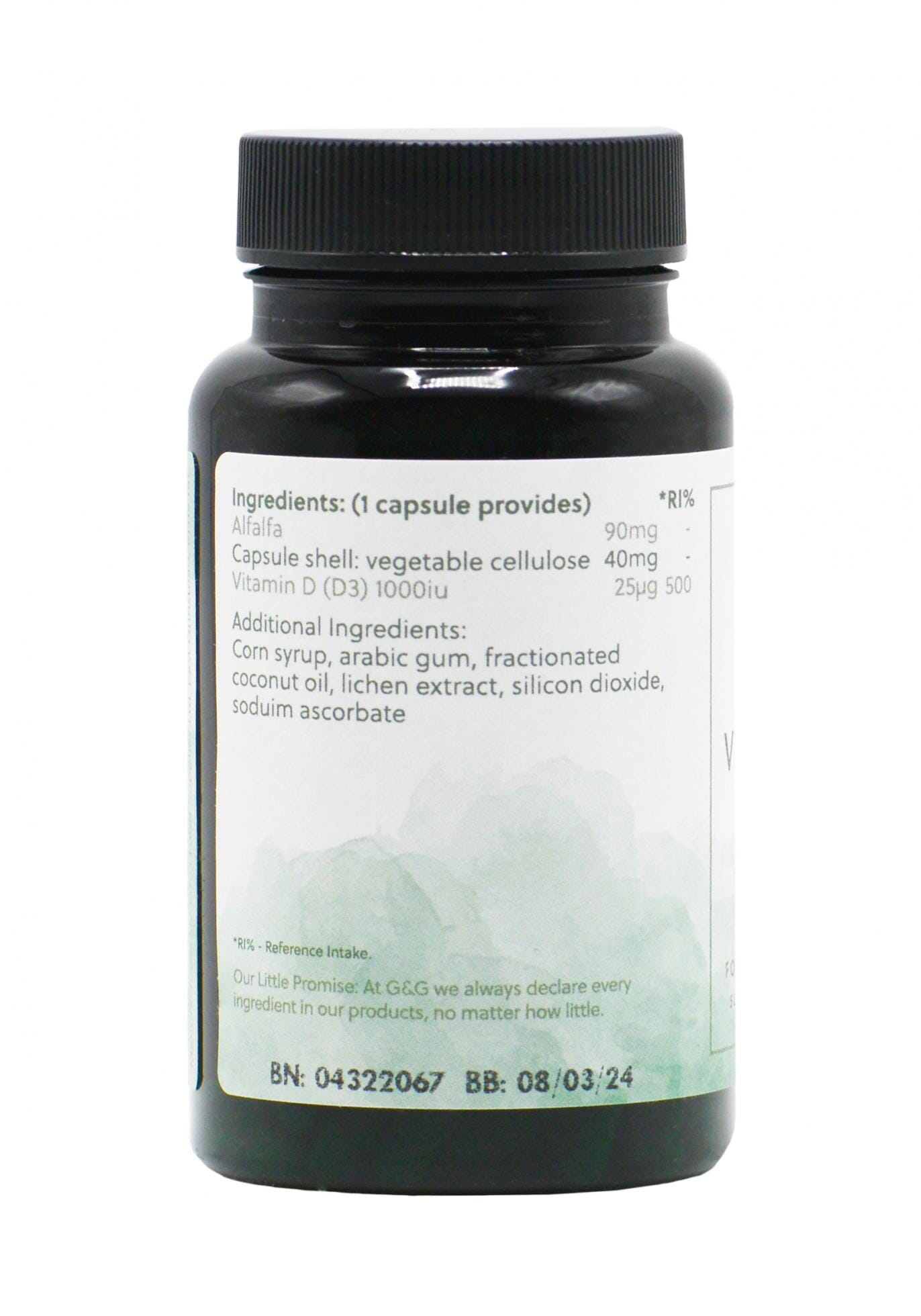 G&G's Vitamin D3 is made from natural lichen; a composite organism that arises from algae. Lichen contains incredibly concentrated amounts of vitamin D3, which allows them to produce one of the highest-quality vegan vitamin D3 available. Suitable for vegetarians and vegans and approved kosher.