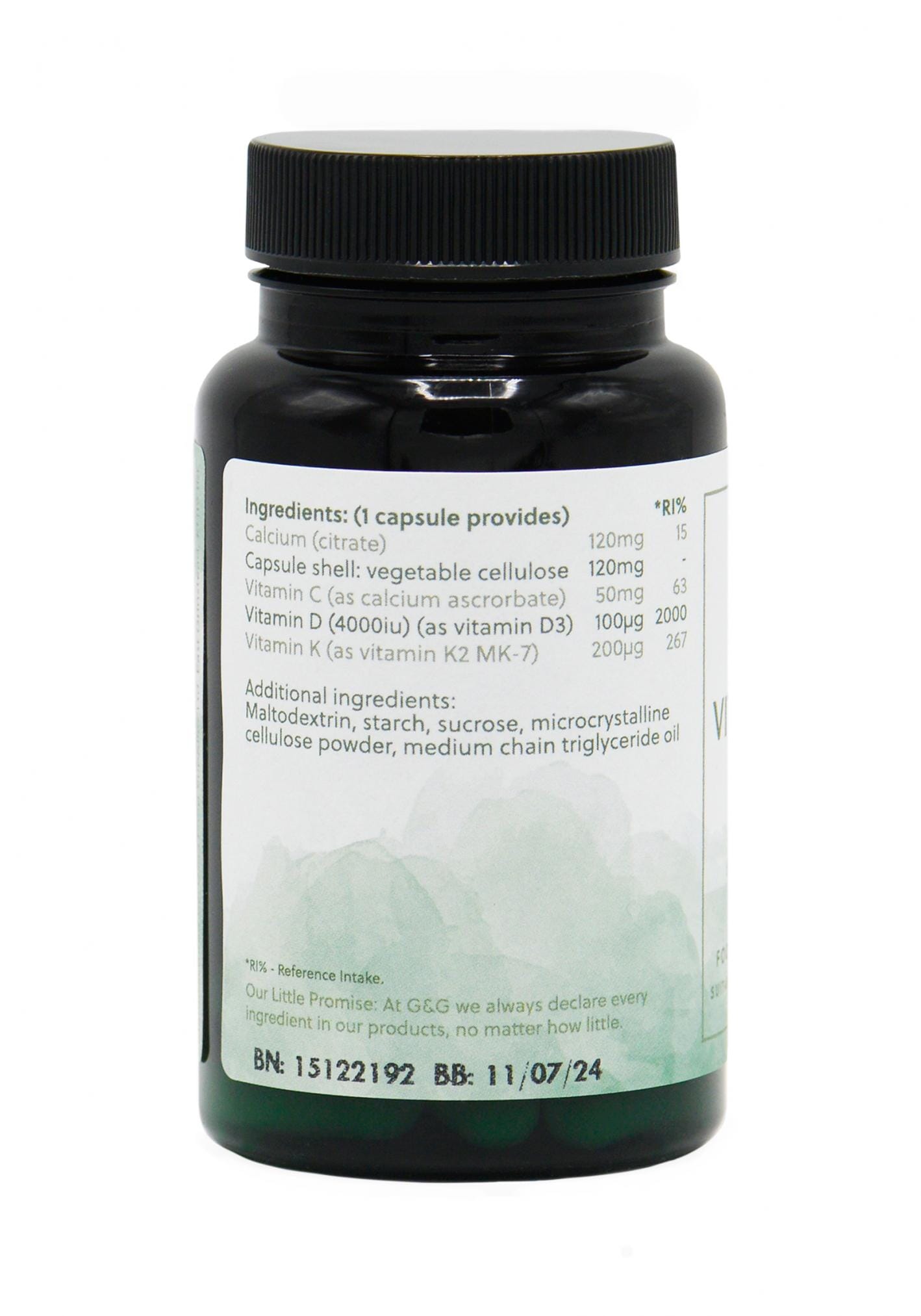 G&G have blended high-quality vitamin D3 with calcium and vitamin K2 to form a multi-purpose supplement. Vitamin D, C, K2, calcium and magnesium contribute to the maintenance of normal bones and to the normal function of the immune system.