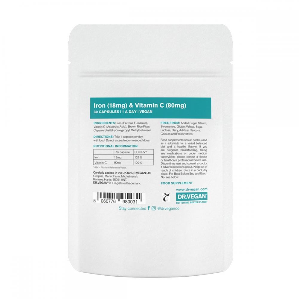 DR.VEGAN Gentle Iron (18mg) is combined with vitamin C (80mg) which greatly improves the body’s absorption of iron and supports a healthy immune system every day. Iron is an essential mineral for cognitive function, concentration and a healthy mood.