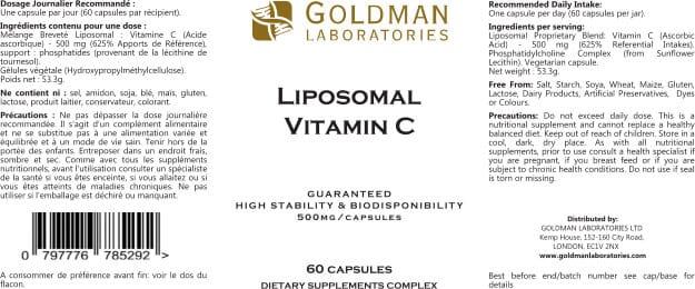 An advanced form of Vitamin C 500mg - high absorption with liposomal encapsulation, stomach friendly. Vitamin C contributes to maintaining normal immune system, collagen, blood vessels, bones, cartilage and the nervous system.