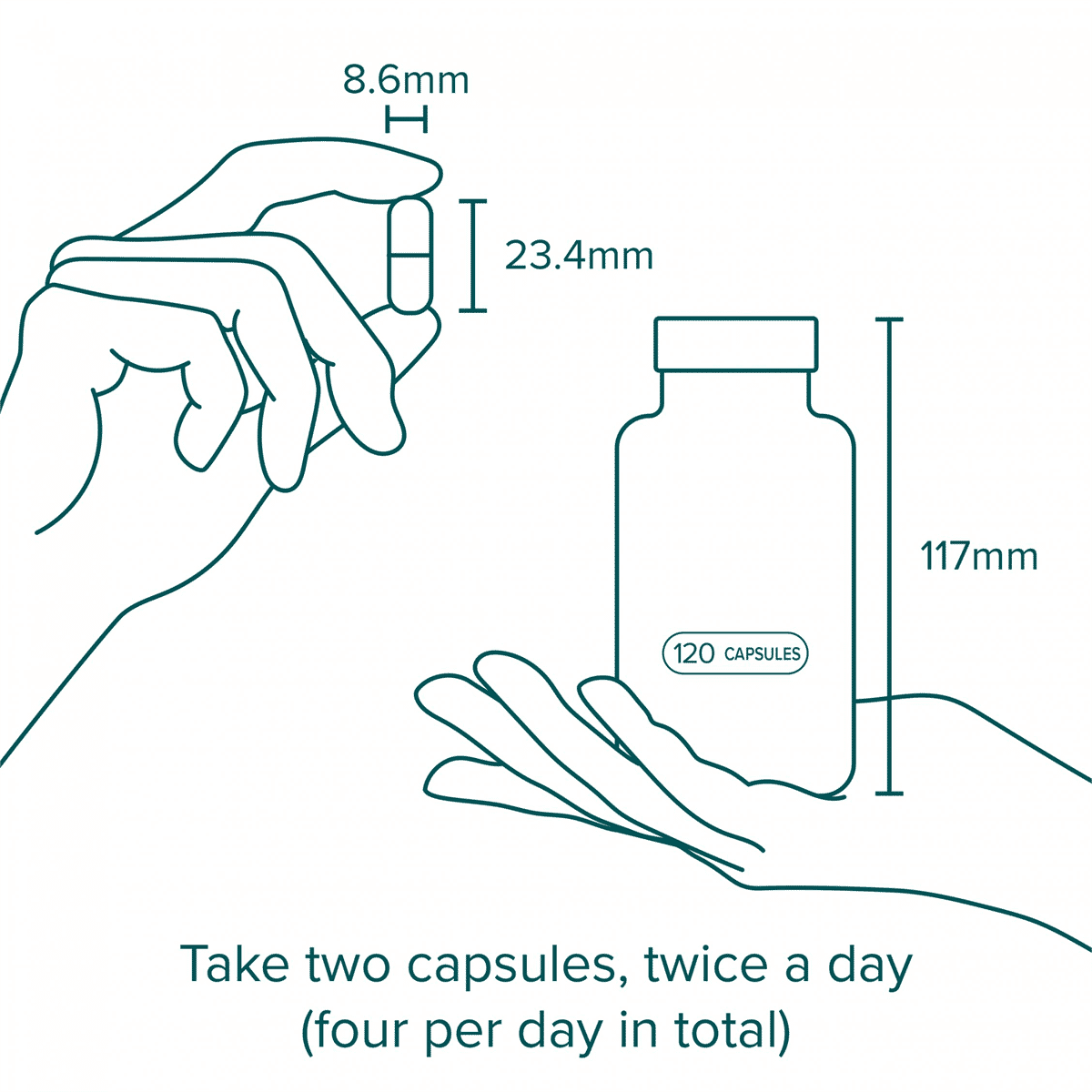 Take two capsules, twice daily (four in total per day) with food. Or as advised by your health practitioner.