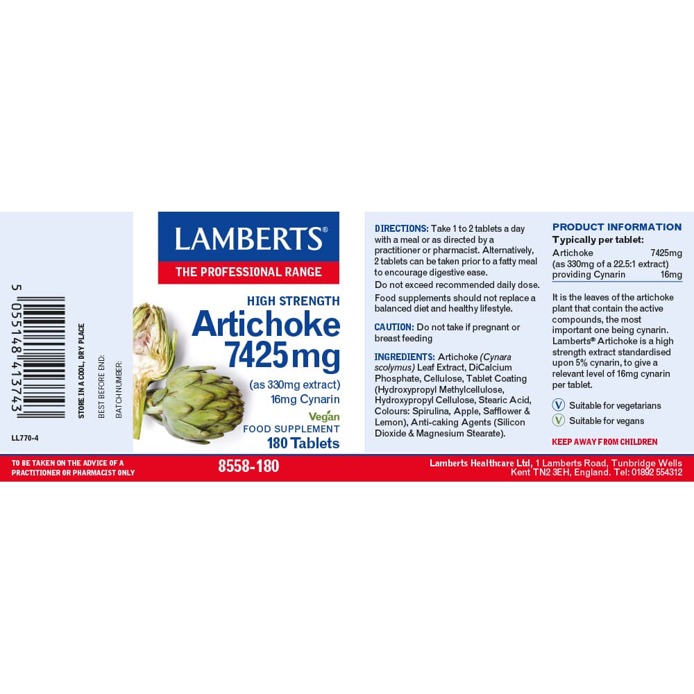 Each Artichoke tablet provides a concentrated extract of artichoke leaves equivalent to 7425mg of dried herb. Guaranteed level of cynarin. Artichoke's use as a herb was first documented in the 4th century BC. Recommended to people who find large, or very fatty meals hard to digest.