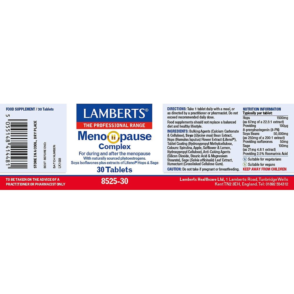 Bulking Agents (Calcium Carbonate & Cellulose), Soya (Glycine max) Bean Extract, Hops (Humulus Iupulus) Flower Extract (Lifenol®), Tablet Coating (Hydroxypropyl Methylcellulose, Colours: Spirulina, Apple, Safflower & Lemon, Hydroxypropyl Cellulose), Anti-Caking Agents (Silicon Dioxide, Stearic Acid & Magnesium Stearate), Sage (Salvia offcinalis) Leaf Extract, Hurnectant (Crosslinked Cellulose Gum).
