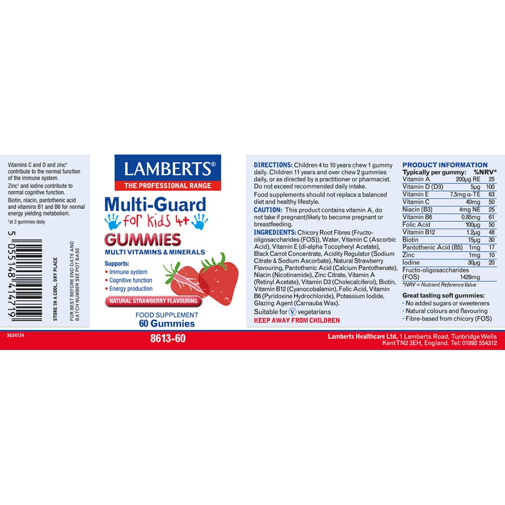 Packed with essential vitamins & minerals, these tasty gummies support healthy growth, development, and overall well-being. Each gummy is formulated to provide key nutrients like vitamins A,C,D,E, & B vits, along with zinc and iodine, ensuring your little ones get the nutrients they need to thrive.