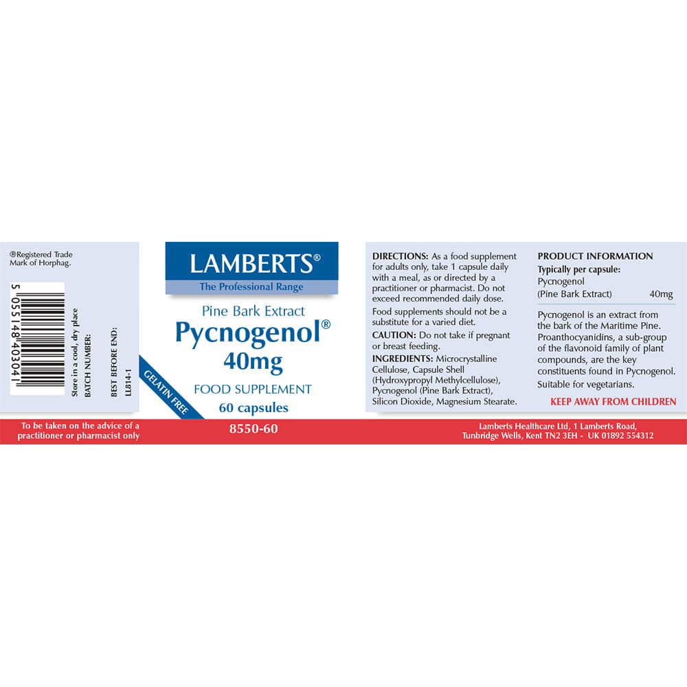 Pycnogenol (Pine Bark Extract), Encapsulated With: Bulking Agent (White Rice Powder), Capsule Shell (Hydroxypropyl Methylcellulose), Anti-caking Agents (Magnesium Stearate & Silicon Dioxide)