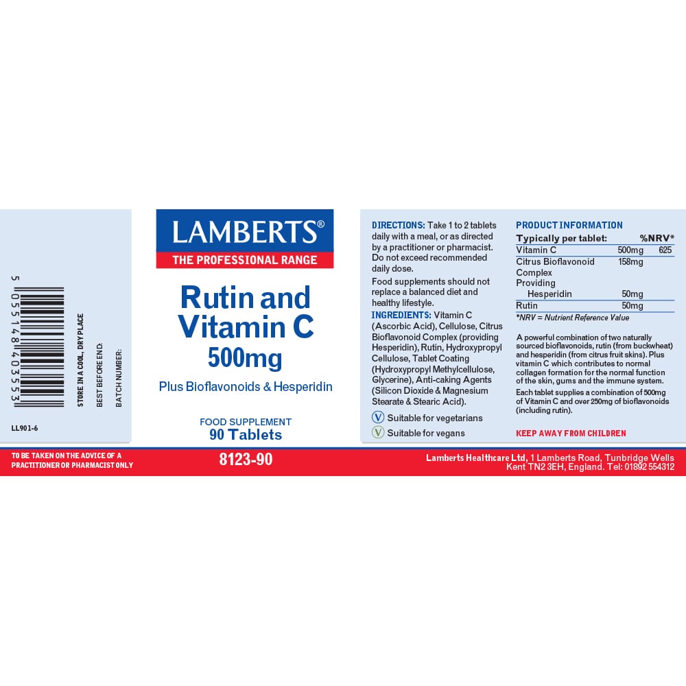 Vitamin C (as ascorbic acid), Citrus Bioflavonoid Complex, Rutin, Hesperidin.