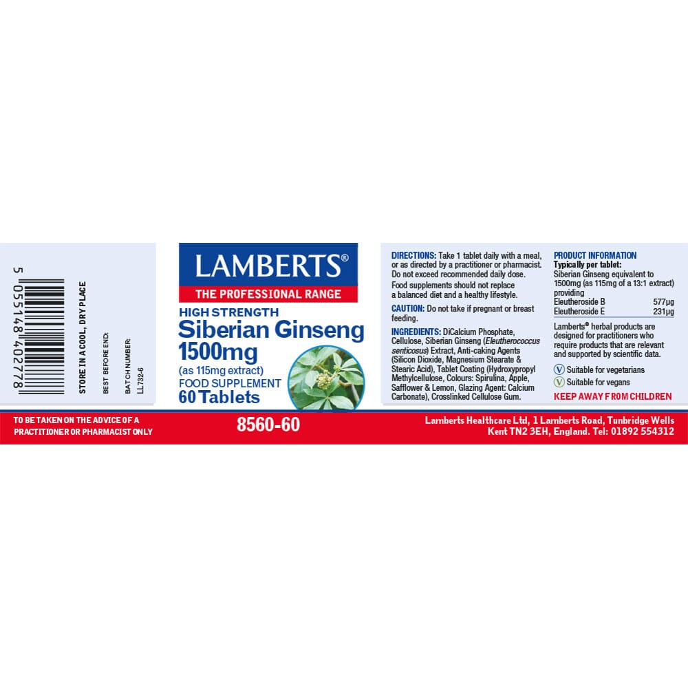Siberian Ginseng equivalent to: 1500mg (as 115mg of a 13:1 extract)