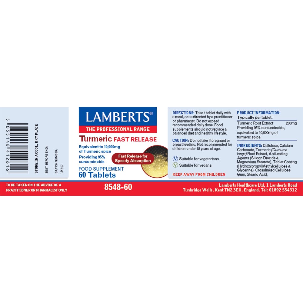 High potency root extract standardised to provide 95% curcumins. 200mg of turmeric root extract, equivalent to a full 10,000mg of turmeric spice per tablet. Purest grade extract. Fast release, disintegrating between 15 and 30 minutes for speedy absorption. Meets EU regulations on contaminates.