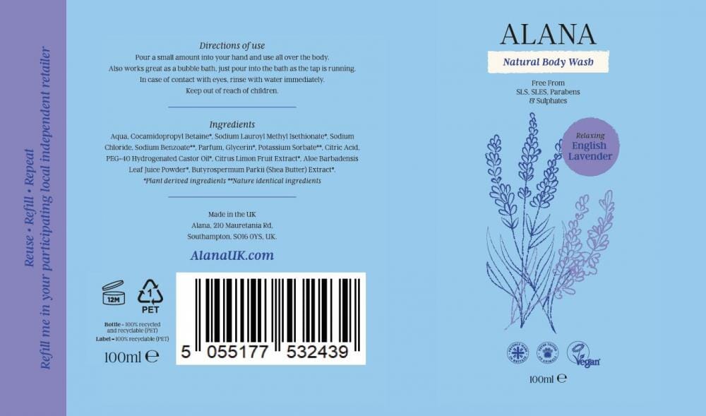 Alana is formulated with natural ingredients & free from SLS, SLES, parabens, sulphates & artificial colourants. These bottles are made with 100% recycled PET from waste collected on beaches & the surrounding environment. Alana never tests on animals & they are certified by the Vegan Society.