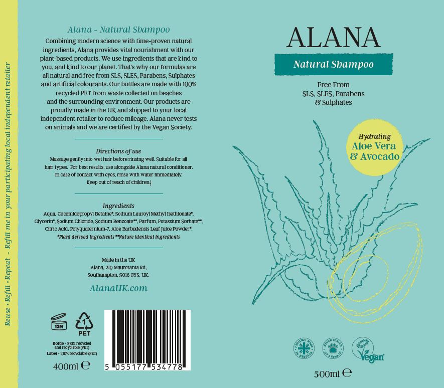 Natural Shampoo Hydrating Aloe Vera & Avocado 500ml