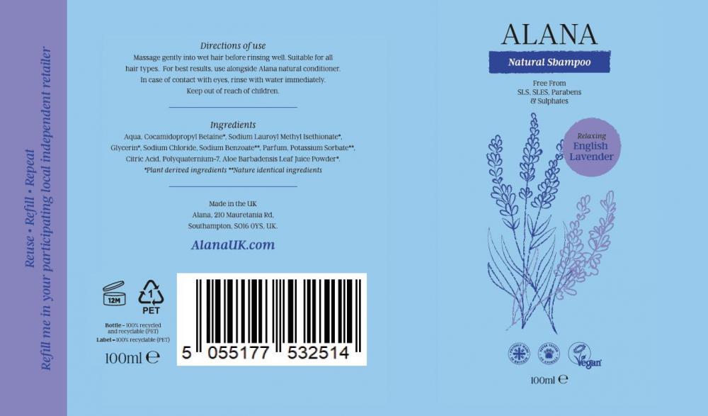 Natural Shampoo Relaxing English Lavender 100ml (Travel Size)