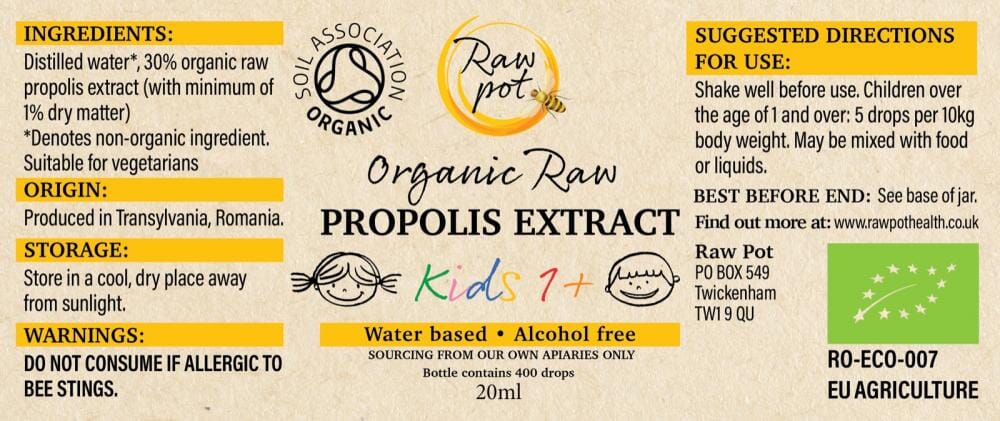 Organic Raw Propolis Extract Kids 1+ 20ml