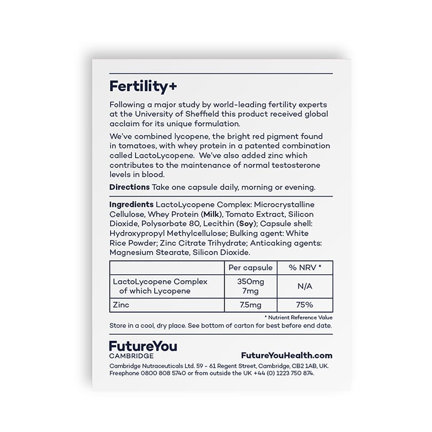 Fertility+ with LactoLycopene is a unique reproductive health supplement for men, specially formulated with lycopene and zinc. It was featured in a major study by world-leading fertility experts at the University of Sheffield.