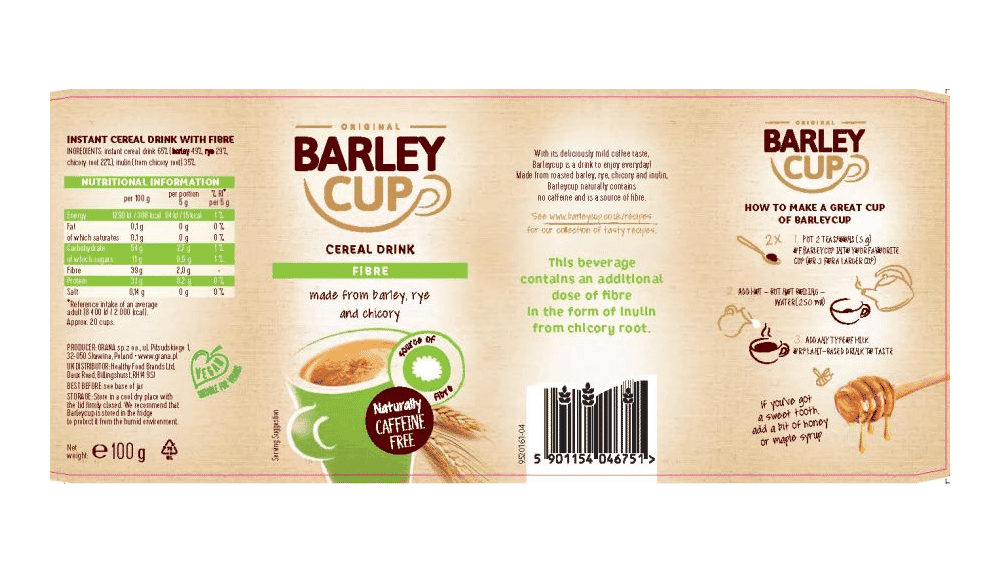 Add two teaspoons (5g) of Barleycup to hot, but not boiling, water (250ml). Add any type of milk or plant-based drink to taste.