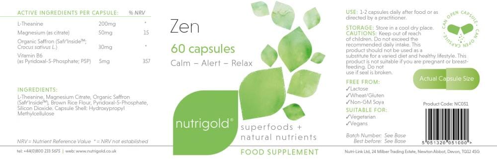 L-Theanine, Magnesium Citrate, Organic Saffron (Saf’Inside™), Brown Rice Flour, Pyridoxal-5-Phosphate, Silicon Dioxide. Capsule Shell: Hydroxypropyl Methylcellulose