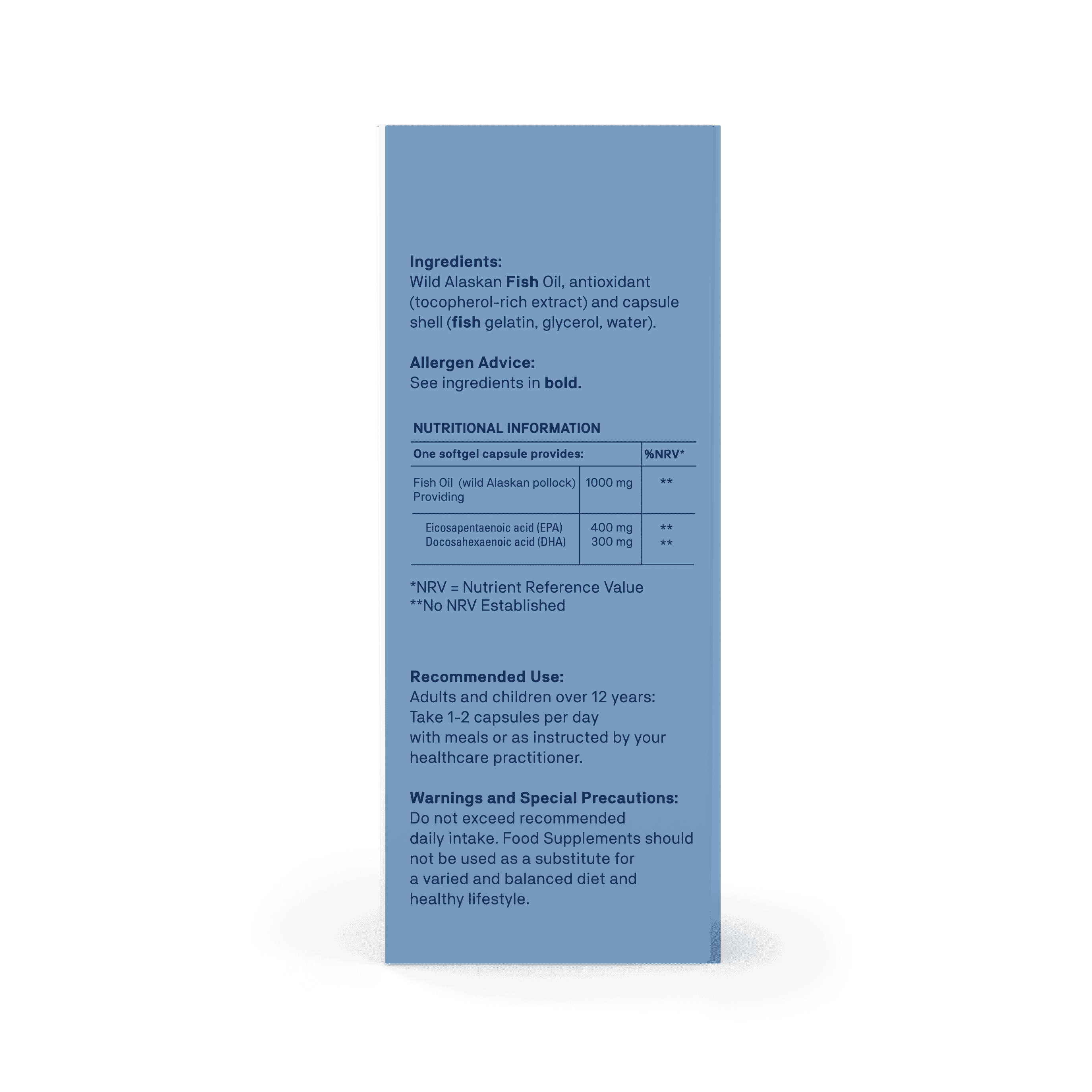 Wild Alaskan fish oil, antioxidant (tocopherol-rich extract) and capsule shell (fish gelatin, glycerol, water).