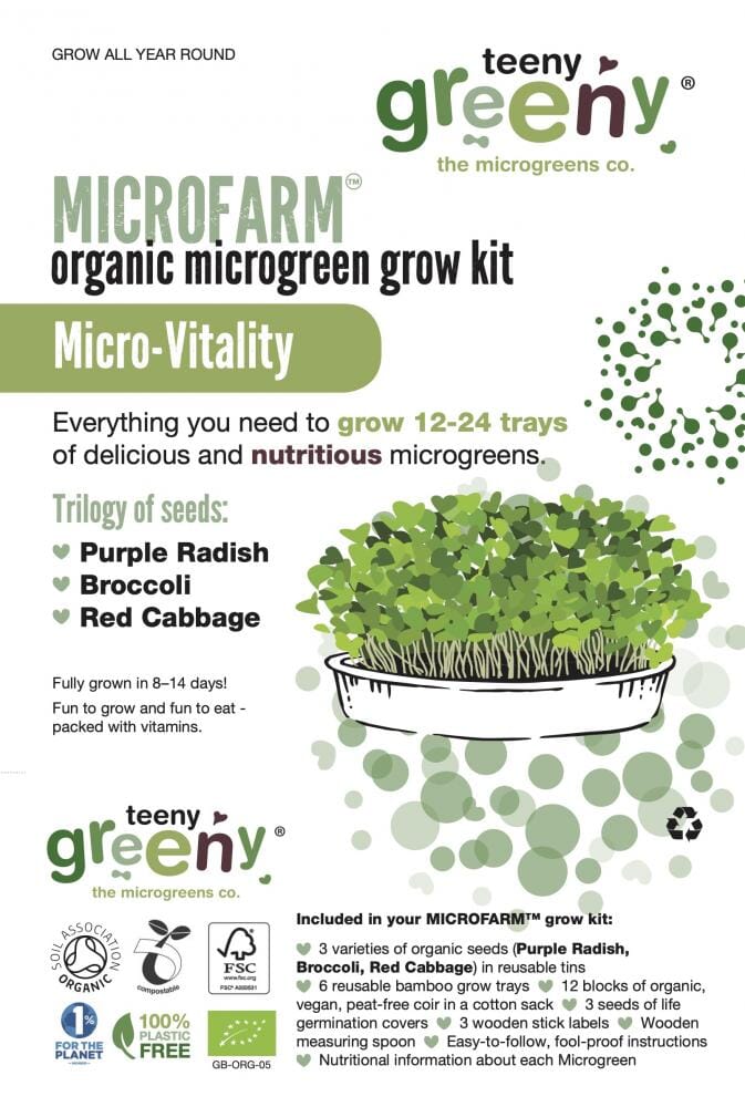 Teeny Greeny's Microfarm Grow kits are designed so you grow 3 trays of microgreens each week on a rotation. Microgreens can contain 40X nutrients of the mature plants so are eaten for this reason. They will re-grow so you will get more than the 12 -24 trays and are replenishable.