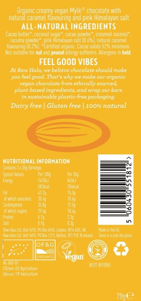 Mylk & Salted Caramel Organic Chocolate Vegan 70g