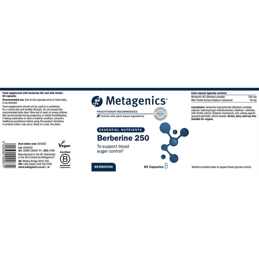 Berberine 250 offers targeted support for glucose and lipid metabolism, insulin sensitivity, gut health and microbial balance. With milk thistle to enhance bioavailability, this synergistic formula supports healthy HbA1c, cholesterol, and blood glucose regulation following carbohydrate-rich meals.