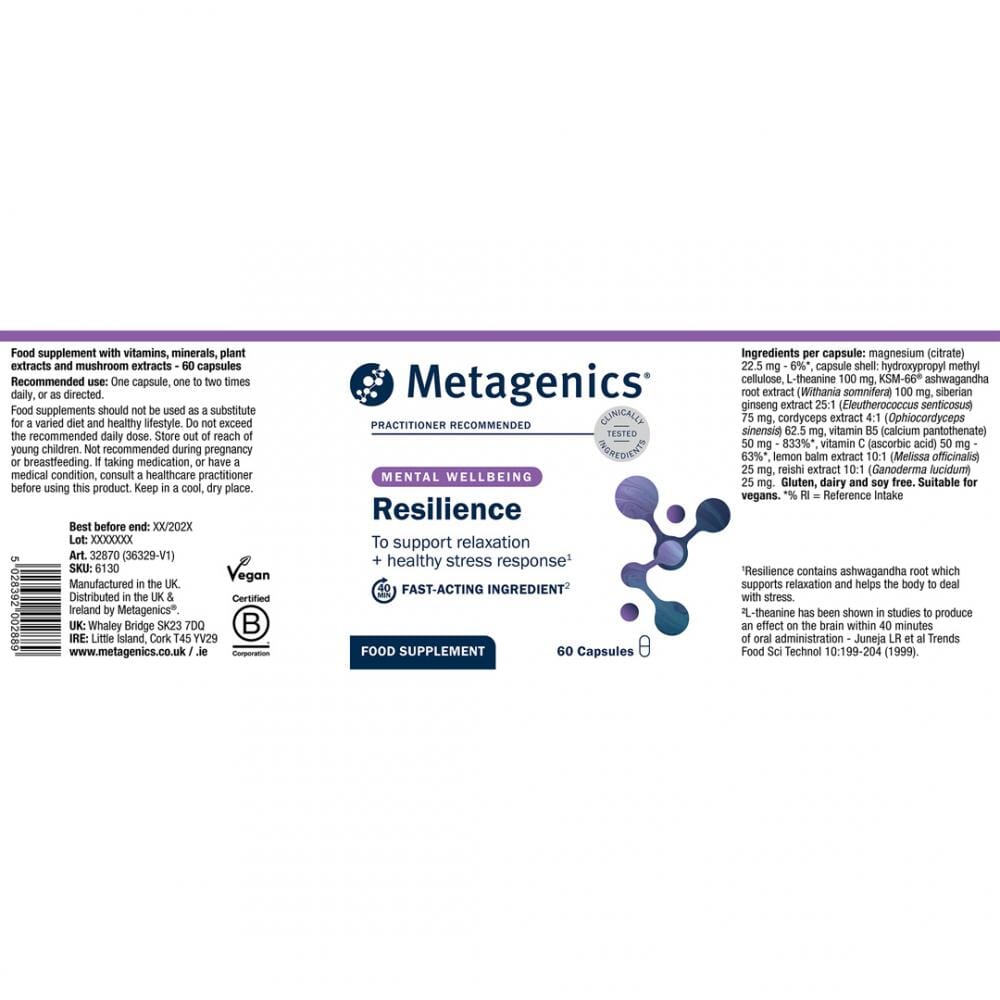 Resilience blends fast-acting L-theanine with adaptogens like KSM-66® Ashwagandha, Siberian ginseng, reishi & cordyceps to support stress resilience, nervous system health, relaxation, and energy. Includes magnesium, B5, C, and lemon balm for complete stress and fatigue support in busy lifestyles.