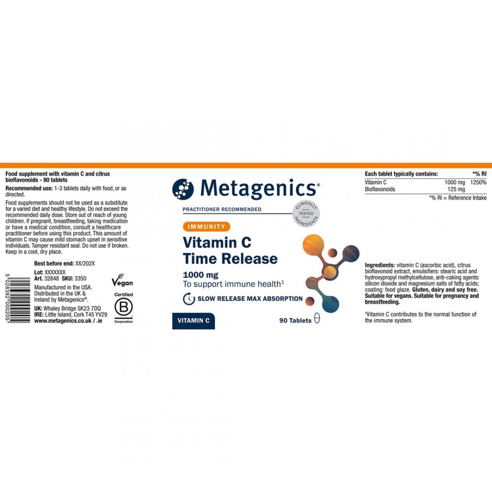1000mg vitamin C in a time-release tablet, which not only releases the vitamin C slowly over several hours to maximise absorption but is also gentle on the digestive tract. Formulated to offer support for the immune system, energy production, collagen production and more.