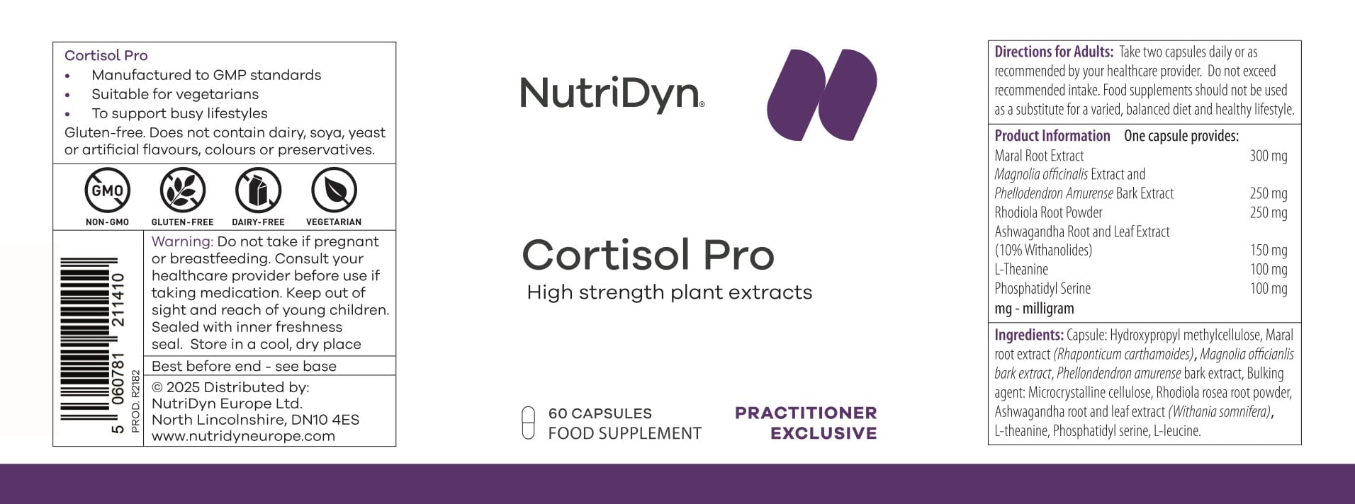 Cortisol Pro contains ingredients such as ashwagandha, rhodiola, phosphatidyl serine, L-theanine and maral root which help to support and promote a healthy stress response.