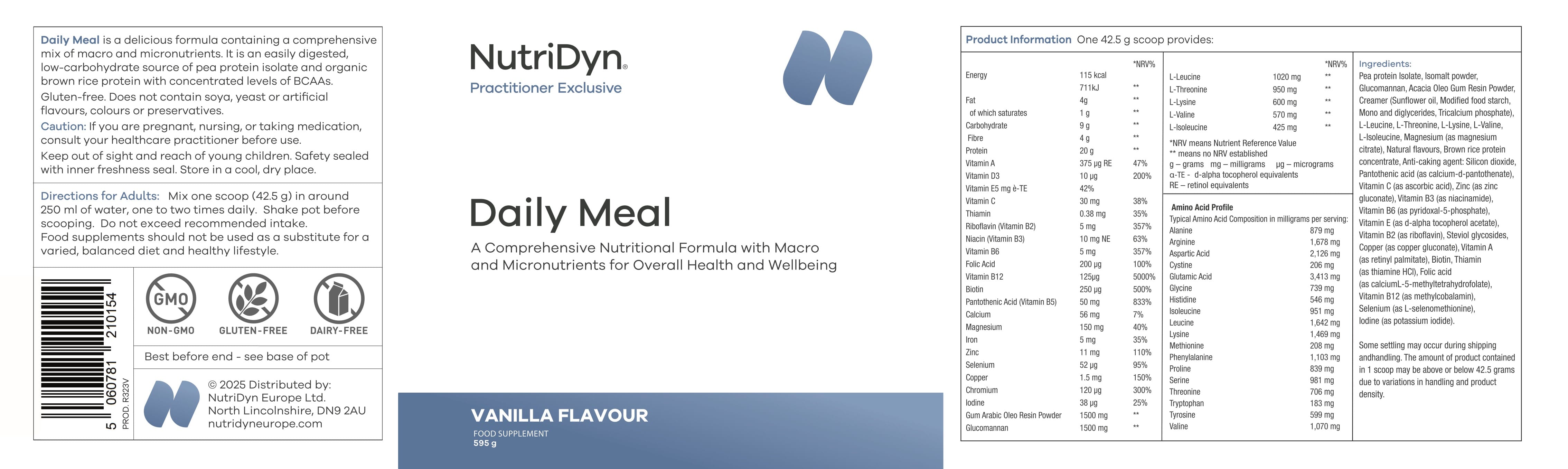 Daily Meal is a delicious formula containing a comprehensive mix of macro and micronutrients. It is an easily digested, low-carbohydrate source of pea protein isolate and organic brown rice protein with concentrated levels of BCAAs.