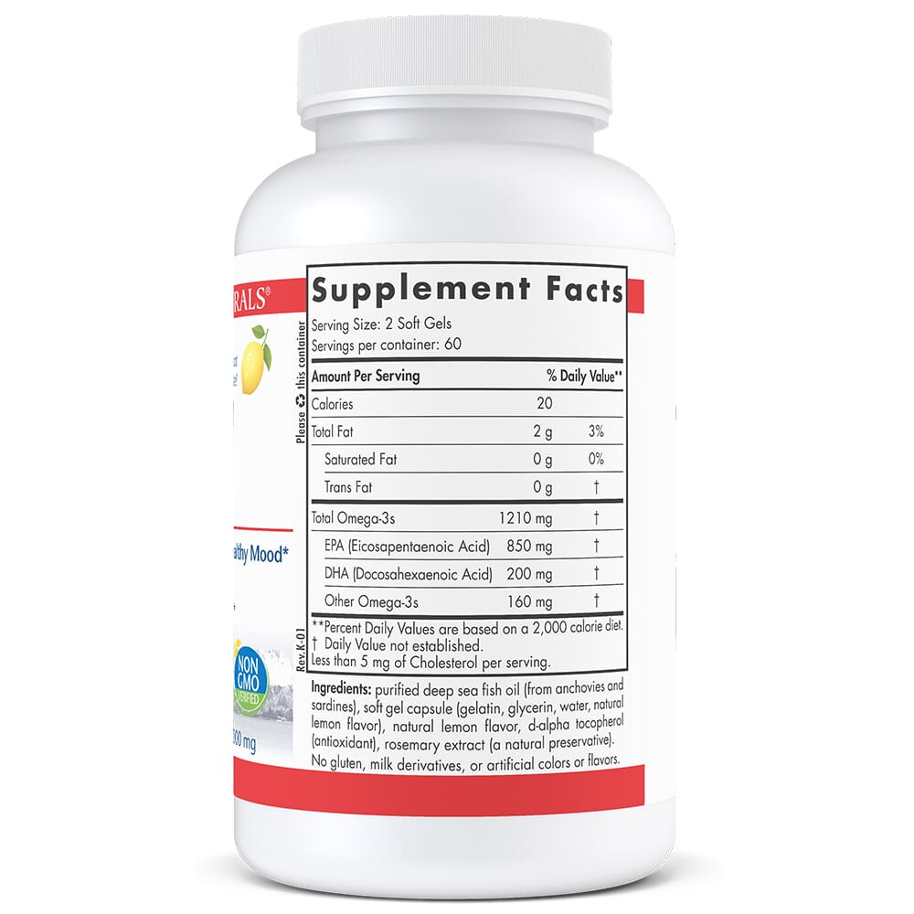 Purified deep-sea fish oil (from anchovies and sardines), softgel capsule (gelatin, water, glycerin, natural lemon flavouring), natural lemon flavouring, antioxidant: vitamin E (as d-alpha tocopherol), antioxidant: extracts of rosemary.