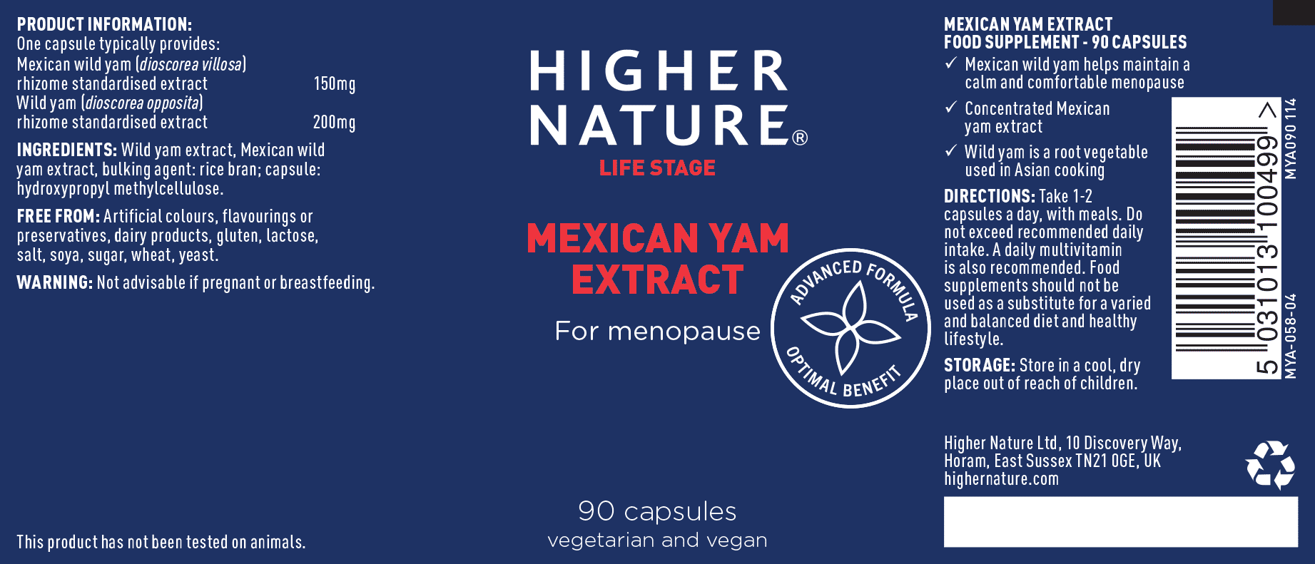 Wild Yam extract, Mexican Wild Yam extract, bulking agent: rice bran, capsule: hydroxypropyl methylcellulose