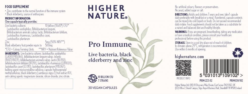 Pro-Immune contains a unique combination of 7 strains of science-backed, well-researched resident live bacteria including Lactobacillus acidophilus, rhamnosus, plantarum and casei and Bifidobacterium lactis, bifidum and longum delivering 10 billion CFUs per capsule, with black elderberry and zinc.