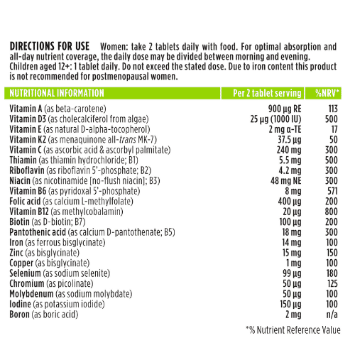 This product contains iron, which, if taken in excess, may be harmful to very young children. Due to iron content this product is not recommended for postmenopausal women.